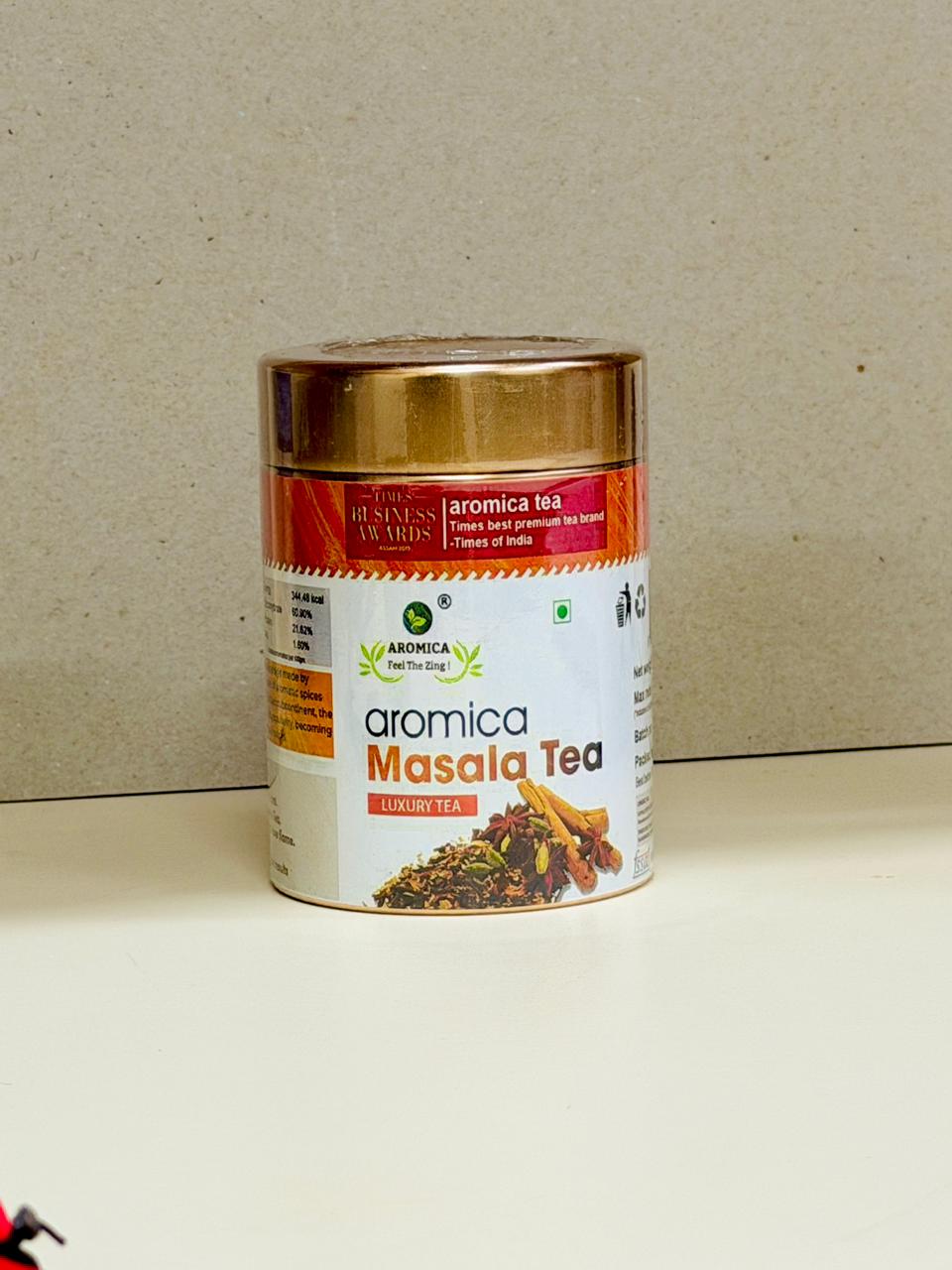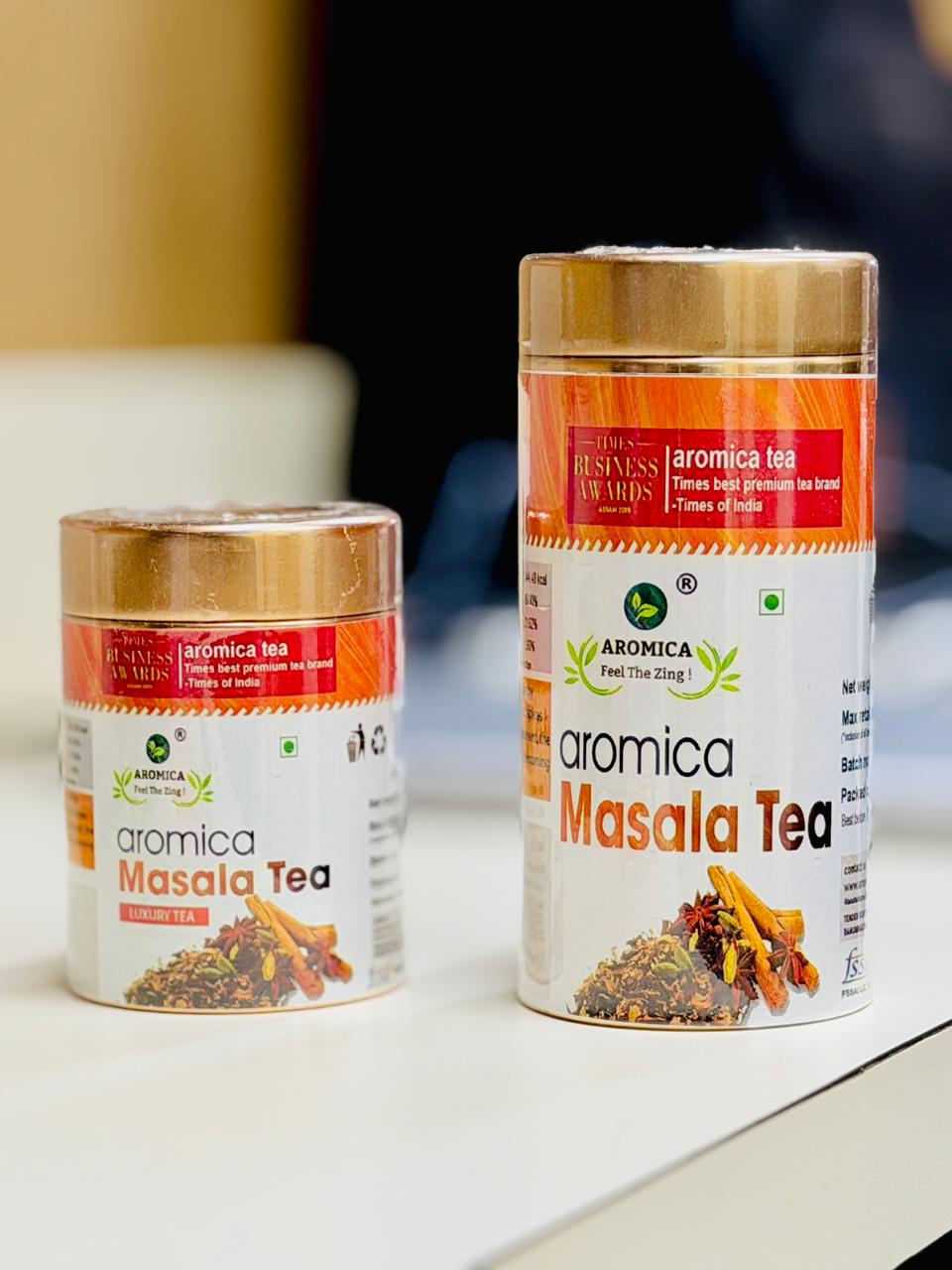 Bold, aromatic, and deeply comforting — Aromica Spiced Masala Tea is a true celebration of India’s chai tradition. Crafted with a perfect balance of robust Assam CTC and smooth Orthodox leaves, this blend delivers depth, strength, and a naturally rich character. Infused with five authentic spices — cardamom, ginger, clove, cinnamon, and black pepper — it offers a cup that’s full-bodied, warm, and invigorating. Every sip awakens your senses and fills your space with the familiar, homely aroma of Indian kitchens.
