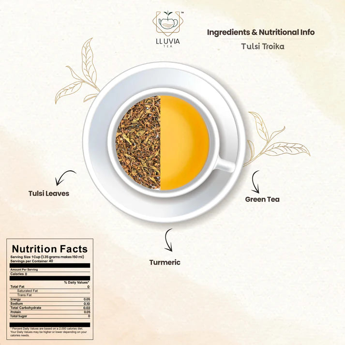 Lluvia Tea Tulsi Troika – Assam Green Tea with Tulsi, Turmeric and Ginger