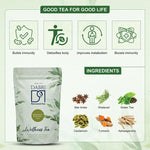 Green Tea, Ashwagandha, Star Anise, Ginger, Brahmi, Basil, Nutmeg, Shatavari, Safed Musli, Pipal, Gokhru, Amla, Cinnamon, Cardamom, Licorice, Fennel Seeds, Turmeric, Rose Petals, Mint Leaves, Cumin Seeds, Stevia Leaves, Nettles Leaves, Giloy, Shilajit