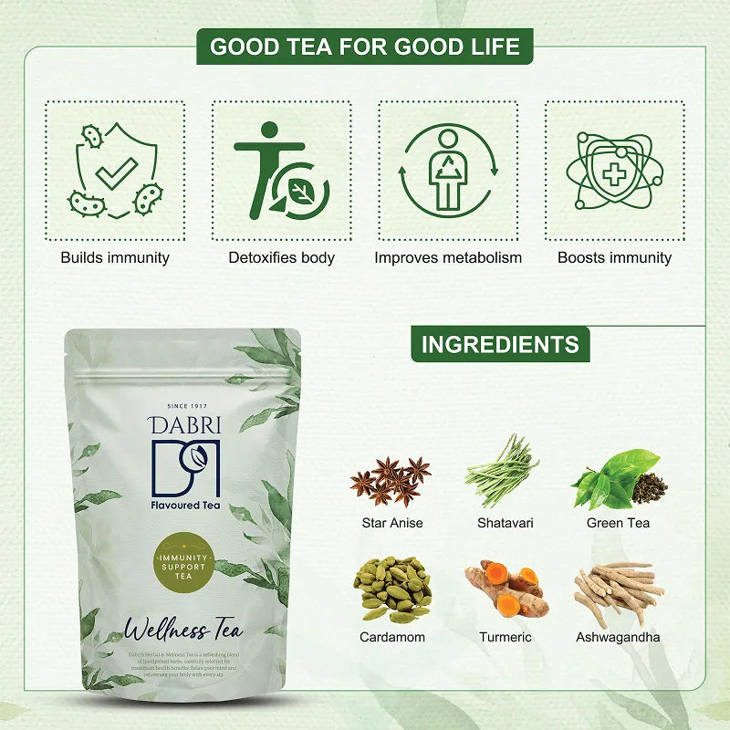Dabri Immunity Support Green Tea reflects this philosophy by combining estate-grown green tea with a wide variety of traditional botanicals used across herbal wellness traditions.