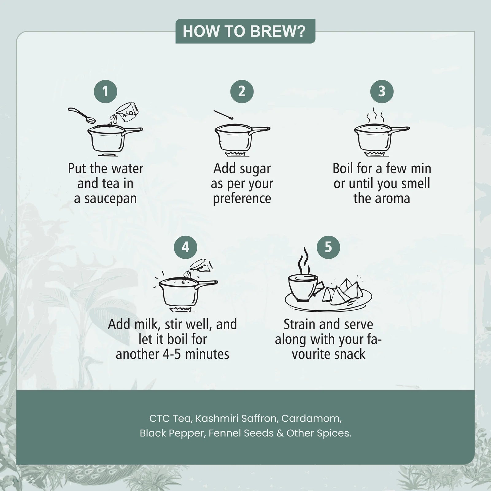 CTC Black Tea, Saffron, Cardamom, Fennel Seeds, Black Pepper, Other Spices