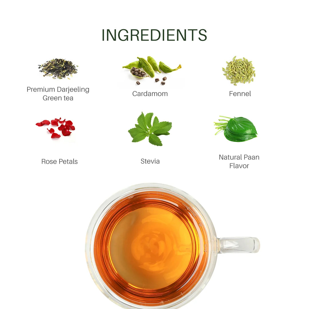 Teavine Rose Paan Darjeeling Green Tea – A Refreshing Aromatic Digestive Blend with Rose, Fennel and Paan-Inspired Flavour