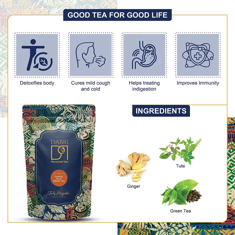 Dabri Ginger Tulsi Green Tea for Immunity and Digestion - Majherdabri Tea Estate