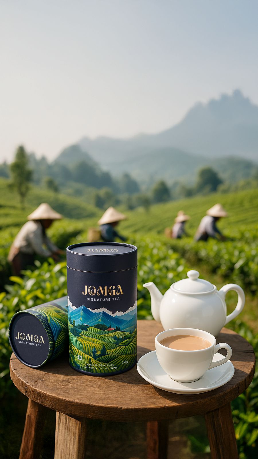 JOMGA is a tea brand rooted in the mist-laden hills of Munnar, born from a small café founded in 2017 amidst rolling tea gardens. What began as a space to thoughtfully explore tea — blending, brewing, and understanding how ingredients and origin shape flavour — evolved into a brand grounded in clarity, authenticity, and respect for the leaf. Working closely with Munnar’s single-origin teas, JOMGA honours the region’s altitude, climate, and cultivation practices, carrying forward a philosophy shaped by hands-on experience, patience, and careful refinement. From café to cup, each expression reflects its landscape — deliberate, balanced, and unmistakably Munnar.