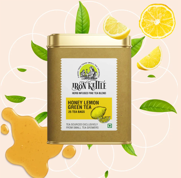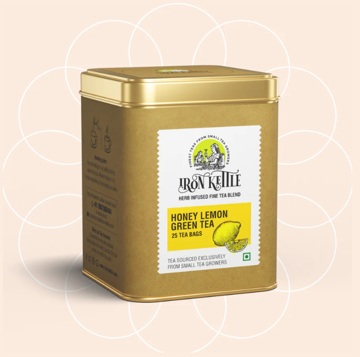 Iron Kettle Honey Lemon Green Tea is a refined blend of high-grown Nilgiris green tea, natural lemon extract and honey. Crafted for those who enjoy bright citrus notes balanced with gentle sweetness, this tea offers a clean and well-defined cup that feels composed and refreshing.