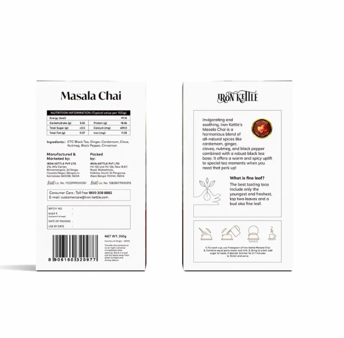 Iron Kettle Masala Chai is a carefully crafted blend of robust CTC black tea and natural spices including ginger, cardamom, cinnamon, clove, black pepper and nutmeg. Inspired by India’s long-standing chai traditions, this blend brings together depth, warmth and balance in a cup designed for everyday enjoyment.