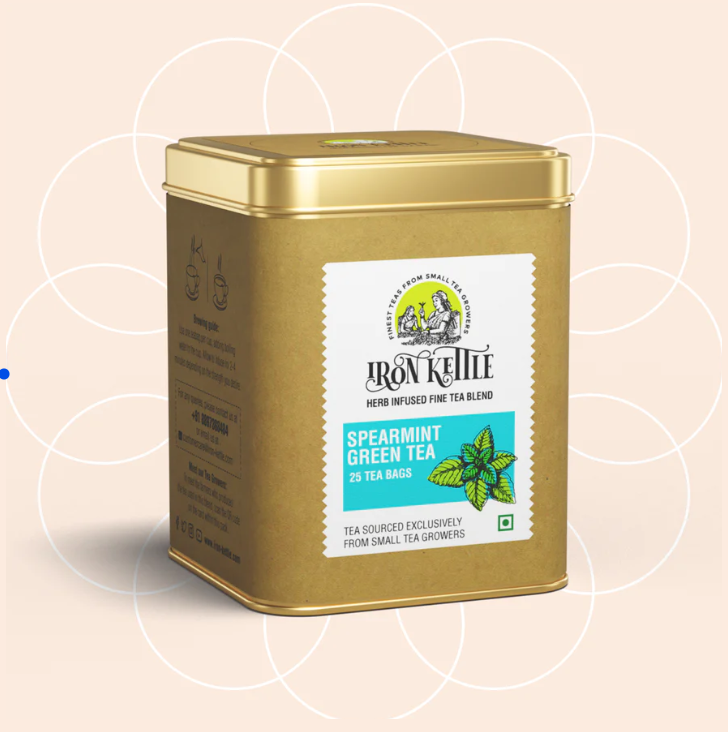 Iron Kettle Spearmint Green Tea is a carefully crafted blend of high-grown Nilgiris green tea and spearmint leaves. Designed for those who enjoy mint-forward green teas, this blend brings together the clean character of mountain-grown green tea and the cooling clarity of spearmint in a composed and well-defined cup.