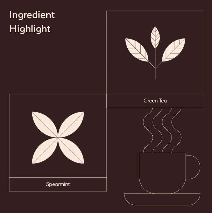 The Nilgiris green tea provides a clear vegetal base shaped by altitude and fine leaf selection. Spearmint takes the lead, contributing a cooling mint character that integrates naturally with the tea. Packed in pyramid-shaped tea bags and made with fine leaf grades, the blend allows proper leaf expansion and controlled flavour release during brewing.