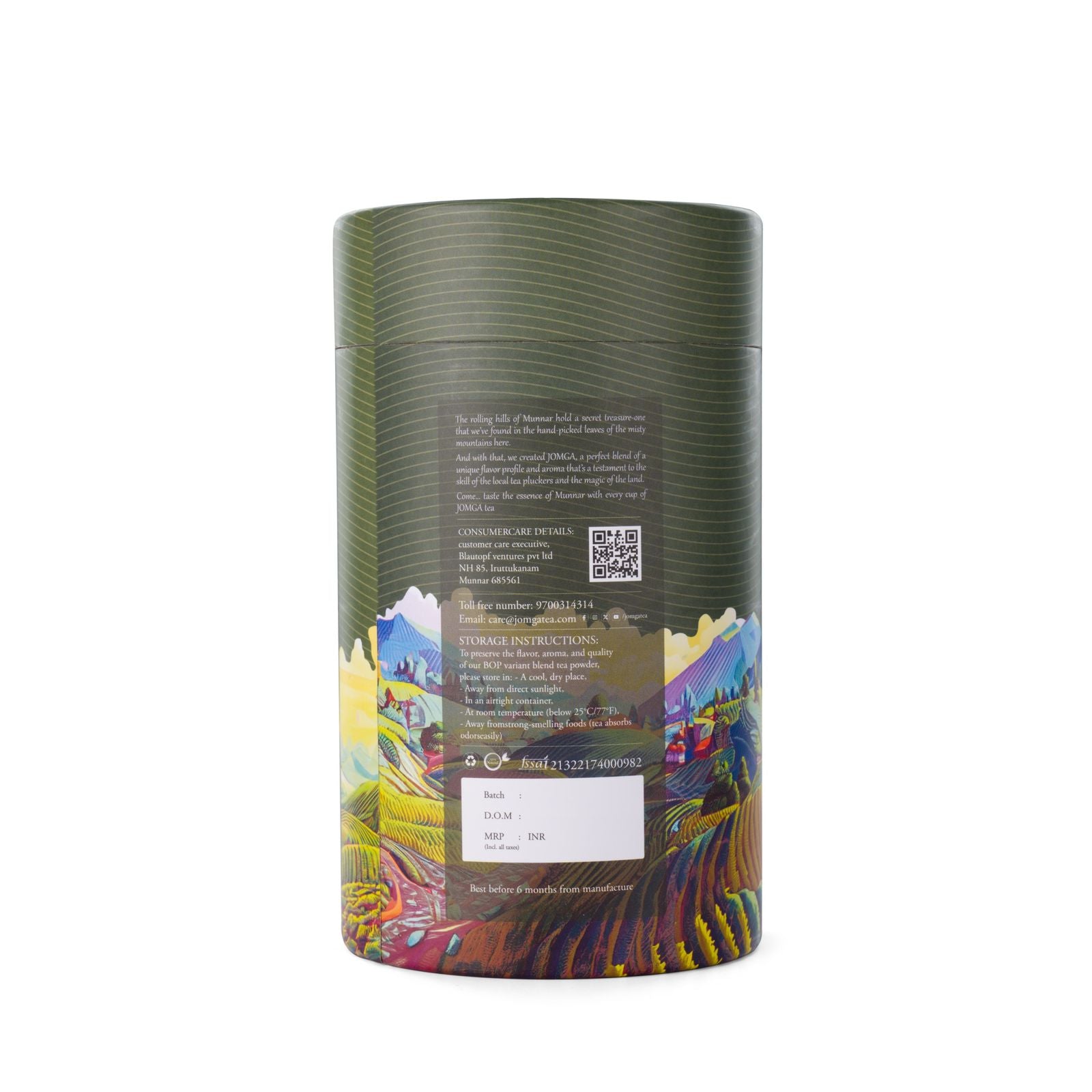 JOMGA is a tea brand rooted in the mist-laden hills of Munnar, born from a small café founded in 2017 amidst rolling tea gardens. What began as a space to thoughtfully explore tea — blending, brewing, and understanding how ingredients and origin shape flavour — evolved into a brand grounded in clarity, authenticity, and respect for the leaf. Working closely with Munnar’s single-origin teas, JOMGA honours the region’s altitude, climate, and cultivation practices, carrying forward a philosophy shaped by hands-on experience, patience, and careful refinement. From café to cup, each expression reflects its landscape — deliberate, balanced, and unmistakably Munnar.