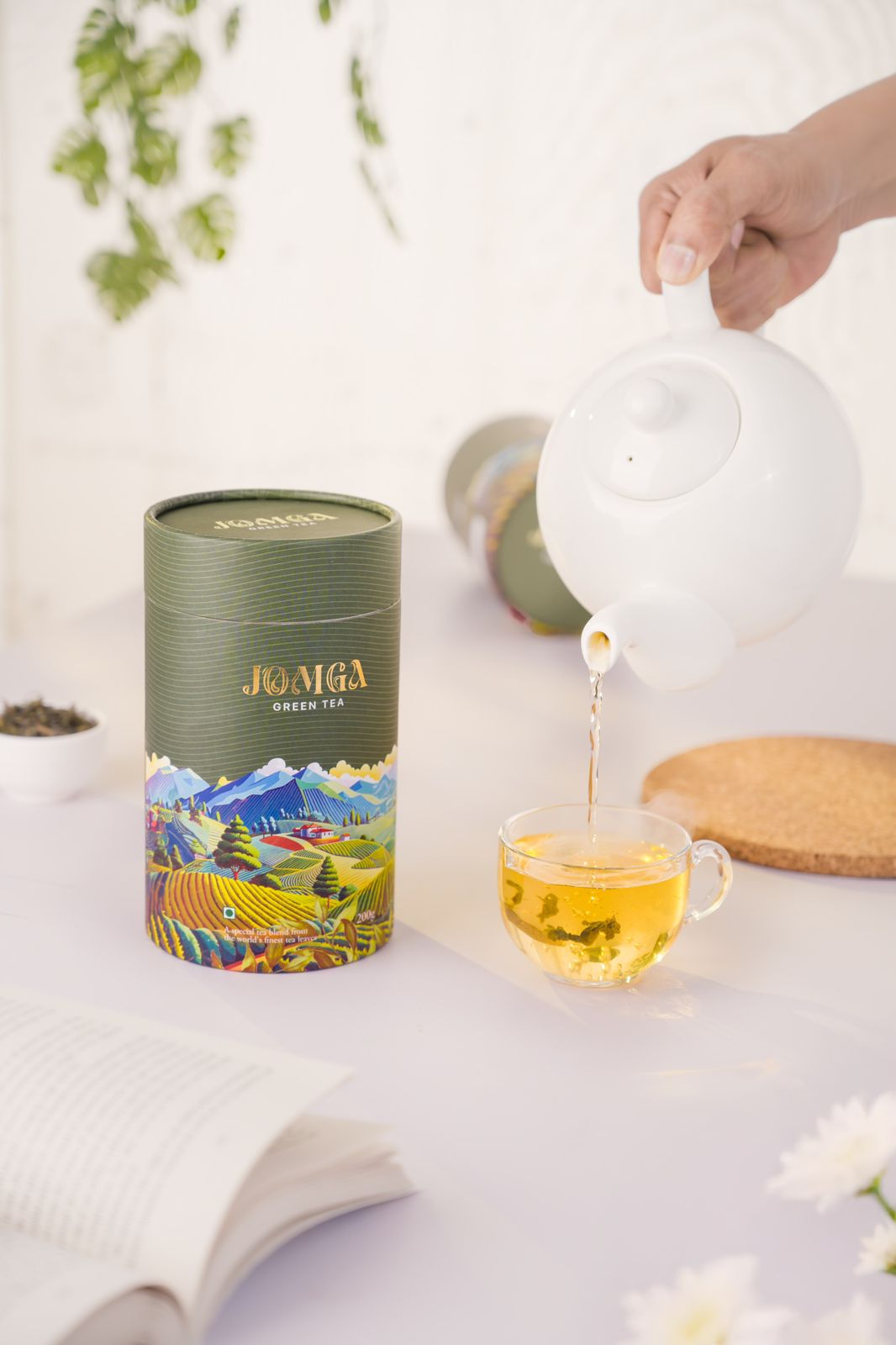 Jomga Green Tea is a refined green tea shaped by the high-grown landscapes of Kerala’s tea country. Carefully handpicked from tender leaves and minimally processed, the tea preserves its natural character and clarity. The cup reveals a clean vegetal profile layered with subtle floral tones and a gentle citrus brightness. The infusion brews into a pale yellow-green liquor with a smooth texture and a balanced finish, best enjoyed without milk.