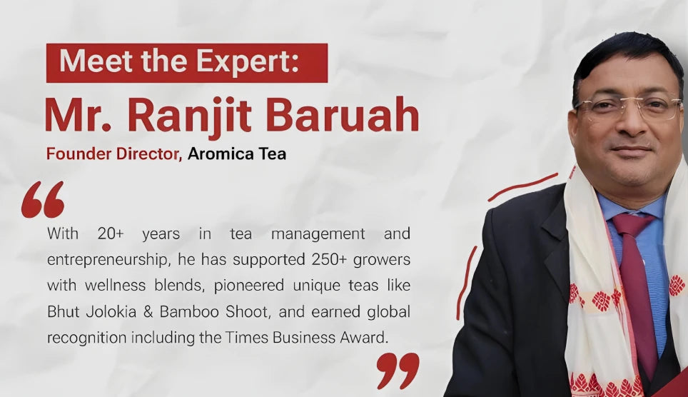 Aromica Tea sources its premium green, black, white, and wellness teas directly from small tea growers in Assam and Arunachal Pradesh. Every leaf is handpicked to ensure freshness, purity, and ethical sourcing while supporting local communities and sustainable farming.
